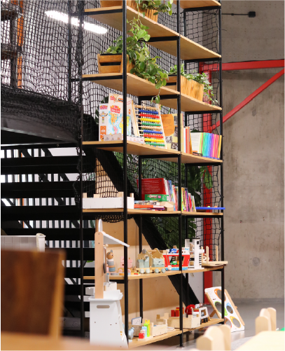 Z połączenia macierzyńskich doświadczeń z nurtem Montessori i założeniami szkoły Waldorfskiej powstała hultajkowa przestrzeń - ciepła, pachnąca drewnem, z wielopoziomową konstrukcją pełną zakamarków i atrakcji. Miejsce nieprzebodźcowujące, dająca ogromne pole do trenowania zarówno motoryki małej i dużej, jak i wyobraźni. Przyjazne zarówno dla maluszków, większych dzieci jak i tych zupełnie już dorosłych gości (mamy wspaniałą kwiarnię!)